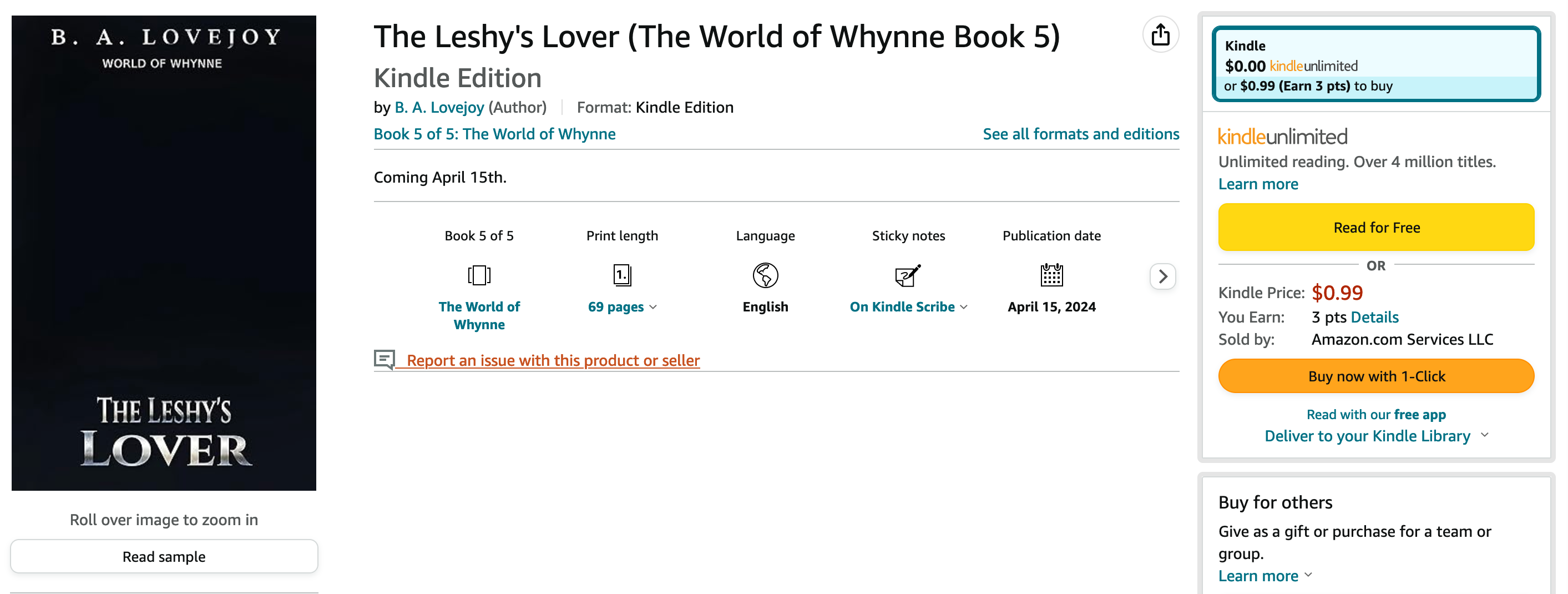 The Leshy’s Lover is here. The full novella is up, you can read it. It doesn’t look like it, which is great. Um.
